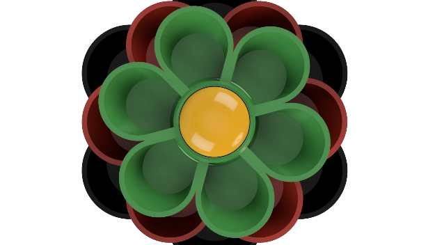 Jewerly storage with petal-shaped compartments. Each layer is a functional storage on its own, and stand can accomodate up to 3 levels on top of each other. Separate files provide stand model and large/medium/small flower. This is my original design.